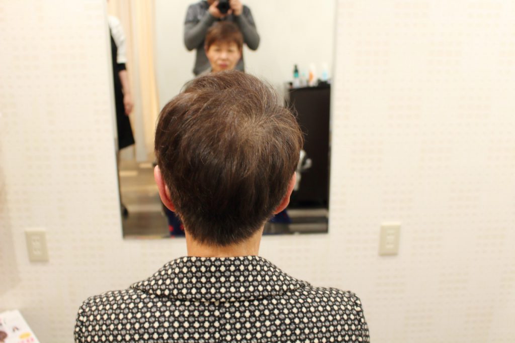 年を取ってくるとどうしても髪や頭皮に衰えがでてくるもの。髪のボリュームも全体的にダウンして、気になる所が段々出てきますよね。特にショートヘアの方で多いのが、つむじのあたりが割れやすくボリューム感が気になる方。周りの人から見るとそんなに薄毛な印象じゃなくても、自分自身としてはかなり気になってしまうものです。特に後ろの人の目線が…。